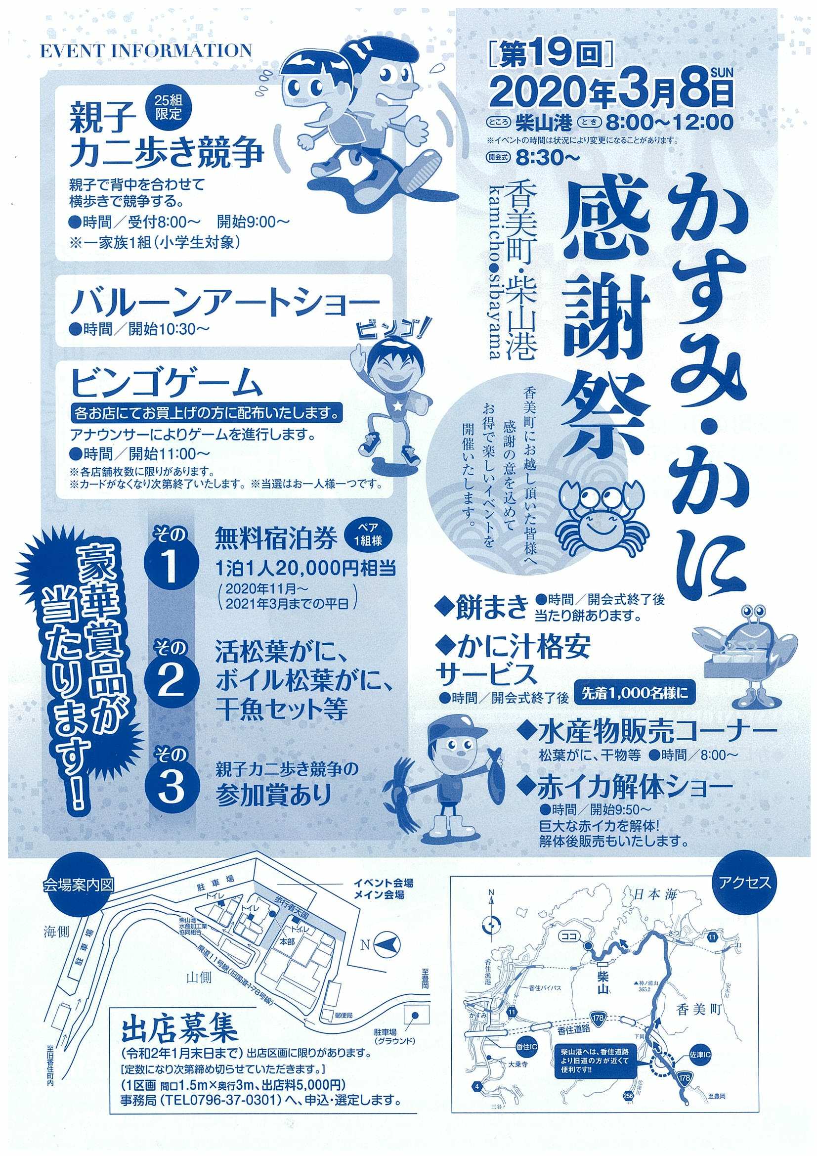 2020年3月8日(日)午前8時00分~12時00分まで、『かすみ・かに感謝祭』を開催します。