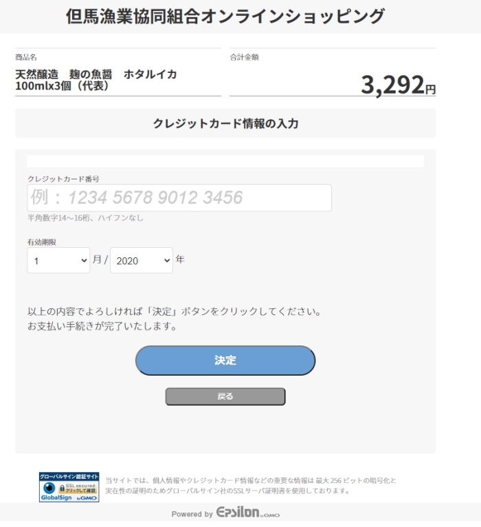 クレジットカード決済情報入力